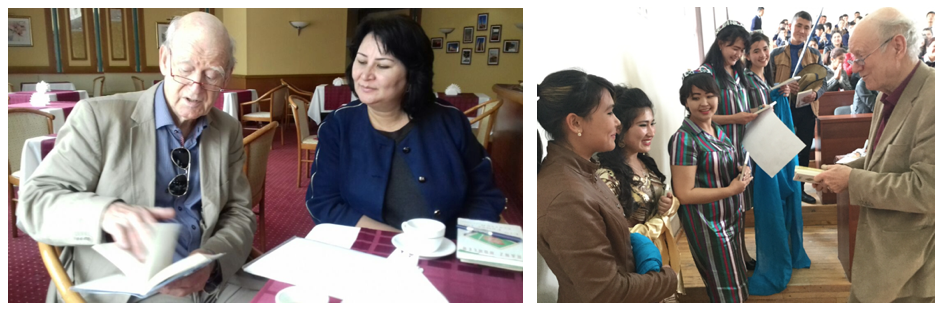 Franz Hohler mit seiner Übersetzerin Hafiza Kuchkarova auf Lesereise in Usbekistan